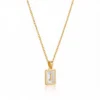 Gold Initial Letter J Mother of Pearl Rectangle Pendant Necklace